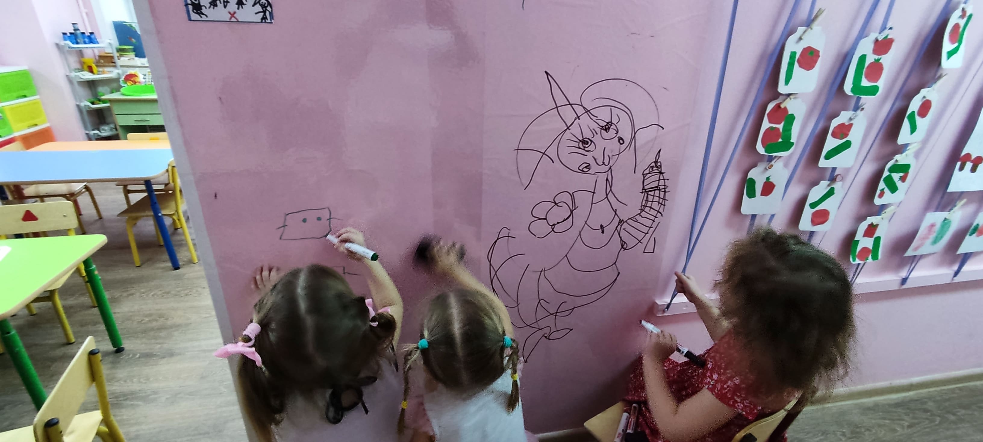 В нашей группе появилась необычная стена. Какая радость, на ней можно рисовать!