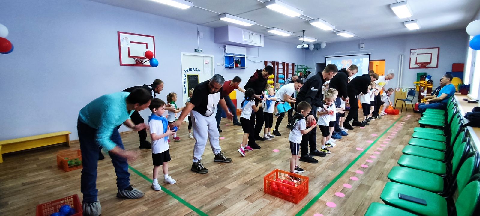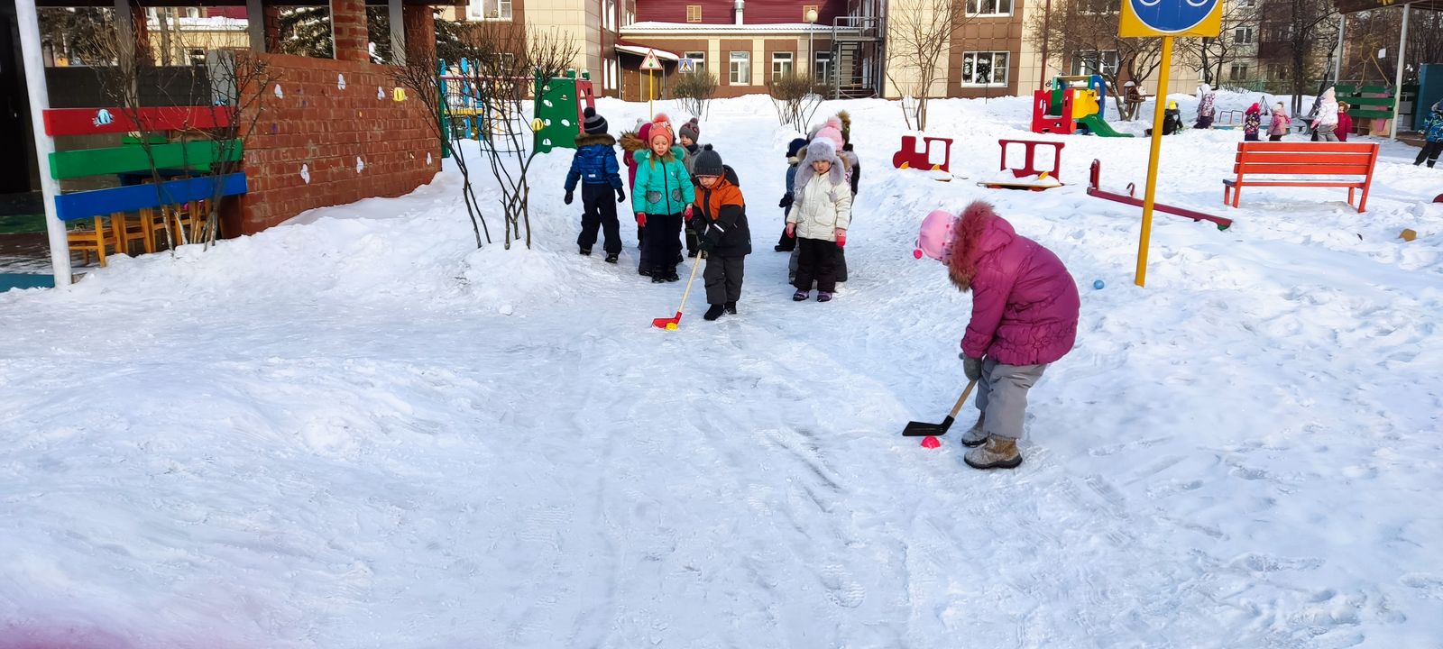 Эстафета дала возможность ребенку поочередно и несколько раз выполнить спортивный элемент хоккея: доведение «шайбы» до черты и возвращение.
