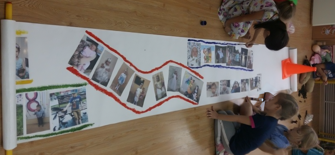 Просмотр цикла развивающих мультфильмов о времени, наблюдение за движением тени на солнечных часах ДОУ и определение времени, Рассматривание плакатов на тему «Время». Оформление книжки с загадками о часах. Фотоальбом «А маленькие часики смеются тик-так» (Дети на фоне разнообразных часов в различных местах планеты). Изучение круговой модели недели (Понедельник – красный, вторник – оранжевый, среда – желтого, четверг – зеленый, пятница – голубой, суббота – синий, воскресенье – фиолетовый). Создание ленты «Время идет, мы изменяемся!». Ознакомление со способами измерения расстояния. Ежедневное заполнение информационного листа с закреплением дня недели и названия текущего месяца. Опыт «Делаем водяные часы».